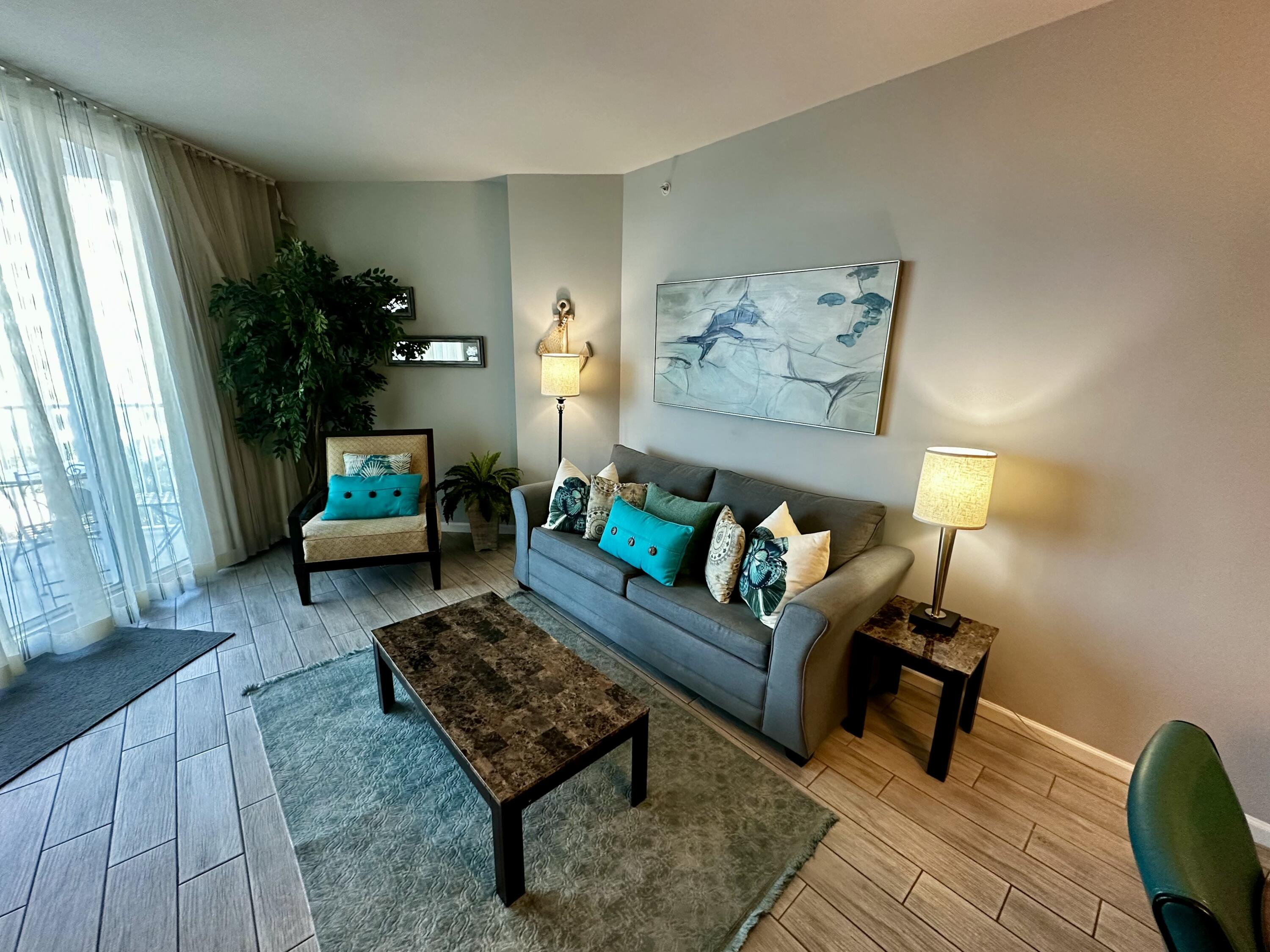 VA assumable loan at 2.25% AVAILABLE! This 11th-floor, west-facing junior two-bedroom residence offers sweeping views of the City of Destin and the Gulf of Mexico PLUS seasonal fireworks over the Destin Harbor from your private balcony. The open-concept living and dining area flows seamlessly onto an expansive, inviting balcony--an ideal place to enjoy the signature sunrises of the Emerald Coast. Residents and guests enjoy a wealth of resort-style amenities, including a beautifully landscaped pool deck featuring Destin's largest lagoon pool with waterfall features, a kiddie pool, hot tub, and splash pad, as well as a playground. Additionally, the complex offers an on-site seasonal restaurant and coffee shop, fitness center, tennis,  pickleball, basketball courts, grilling area, and electric vehicle charging stations.
