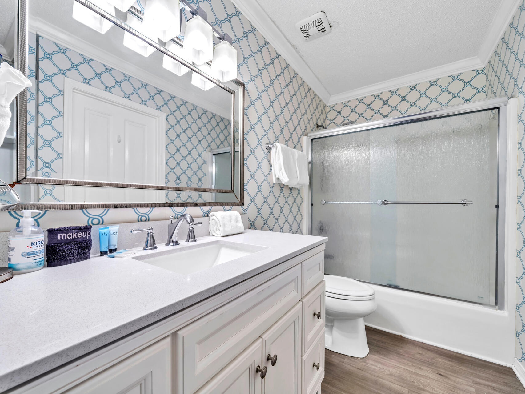 Don't miss this beautifully upgraded 3BR/2.5BA townhome located in the heart of Destin. This residence features elegant fantasy granite countertops throughout the kitchen, bathrooms, and laundry room, complemented by custom white shaker cabinets in the kitchen, island, laundry room, and all bathrooms.The kitchen is equipped with a stylish custom backsplash and stainless steel appliances, while the laundry room offers added convenience with custom cabinetry, a closet, and a built-in clothes rack.The master suite includes a generously sized walk-in closet outfitted with wood cabinetry, ample hanging space, and dedicated shoe storage.Thoughtful upgrades such as crown molding throughout enhance the home's overall appeal. With its prime location and refined finishes, this townhome is an exceptional place to call home in the center of Destin.