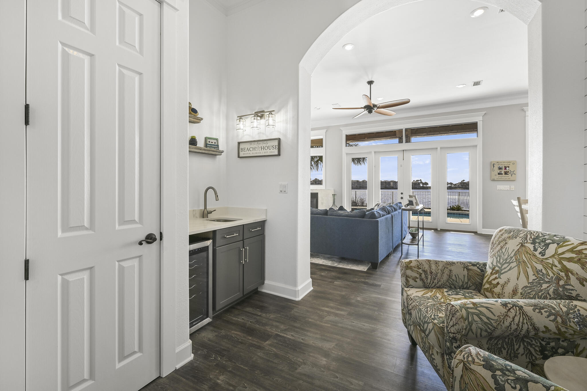WOW!!! This property is a showcase with its luxury appeal and impeccable condition. It was totally renovated to the studs in 2024 with walls, floors and new layout upstairs and downstairs. EVERYTHING is brand new!  Upscaled furnishings by designer. Gourmet kitchen with top-of-the-line appliances including an oversized fridge, custom cabinetry, and breathtaking Taj Mahal quartzite countertops. Quality small appliances (Wolf) plus all brand-new housewares - fully stocked. High-end renovated bathrooms - top notch showers, self-standing tub and all smart toilets. This home is distinguished by its sophisticated designer touches and meticulous attention to detail. Upgraded fixtures, solid wood doors, wide plank engineered hardwood flooring throughout, and energy-efficient design with three separate climate control zones. In the backyard you are welcomed by a larger private pool and hot tub in addition to a firepit overlooking the lake. The property has wraparound balconies and front and back porches to enjoy the serenity. It is a 4 bed /4 ba two-story home, with one bedroom conveniently located on the first floor. It has hardly been lived in and easy to show. Destin Pointe is a Private, gated community with 24-hour security. The resort has two lakes, three pools, including a brand new Gulf-front infinity pool, hot tub, tennis/ pickle ball courts, tram service in season, and deeded beach access to 3000 feet of beach front, adjacent to an environmental preserve with easy access to the beach, Destin Harbor and Destin's East Jetties. There is an On-site guest services / concierge office. Kayak and paddle-board rentals are available onsite. Seasonal tram/shuttle service within the community to/from the beach.
